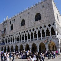 Na Piaza San Marco jsme dorazili před polednem. Prošli jsme si pár krámků a obdivovali jsme nádherné výrobky místních sklářů z ostrova Murano. Do katedrály jsme se bohužel nedostali – lístky online nebyly už ráno k dispozici a od katedrály se táhla nekonečná fronta. V poledne jsme koukli na slavné hodiny, dali si zmrzku a šli na procházku. Slunce pálilo. Děti si přivezly kšiltovky, já slamák a Zdenka si taky jeden koupila u trhovců. Cestou po nábřeží jsme zahlédli Most vzdechů, kudy vodili odsouzence na popravu. Do restaurace nás nechtěli pustit bez útraty na toaletu, takže se holky obětovaly a koupil jsem jim další zmrzlinu.